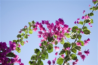 Tych drzew jest wiele gatunków, ale nie będąc botanikiem nie jestem w stanie wszystkich ich wymienić, nie znam nazw wielu z nich. Ale nie na tym mi zależało i nie będę tego zgłębiać, interesują mnie kolory. Najbardziej lubię pnącze bungewilla sięgające nawet 12 metrów. Oplata płoty, mury, wspina się na drzewa, bogato ukwiecone, różnobarwne. Chwilami odnoszę wrażenie, że jest ono jak plaga, pasożyt, ale kolory jakie roztacza, jak potrafi wysokiego na dwa pietra fikusa ozdobić swoim kwieciem – zachwyca urokiem, ożywia szare ulice miasta.